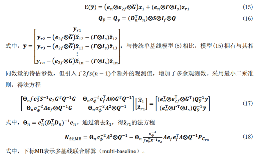 相较于单基线模型,传统多基线模型只是基线方程(5)在多基线情景下的简单累加,并未充分利用监测站间的约束信息。该模型在变形监测中的应用主要包括多监测点的事后网解和多基准站的形变监测方法。然而,其计算复杂度随测站数目增加呈立方级增长趋势,对解算平台的算力要求较高,制约了其在实时变形监测中的应用。