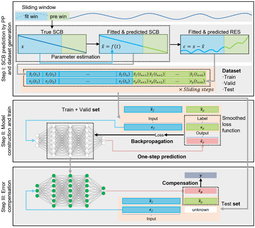 为解决这一难题,同济大学GNSS团队提出了一种神经网络补偿的卫星钟差预报方法(NNC-SP)。该方法构建了“物理模型基准+深度学习补偿”的混合框架,并针对钟差序列特性设计了维段预嵌入(DSW)模块和平滑均方误差(Smoothed MSE)损失函数,显著提升了模型对局部时序结构和连续变化趋势的捕捉能力。利用GRACE-FO卫星实测数据的验证表明,该方法相比传统模型实现了约90%的精度提升,即使在长达1小时的预报中也能保持亚纳秒级的精度。